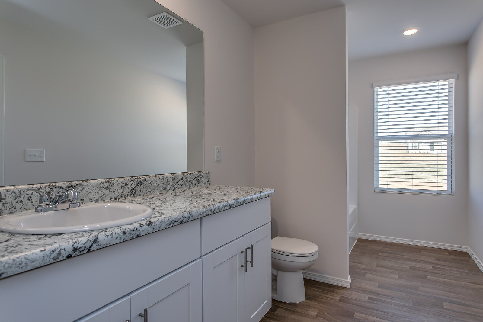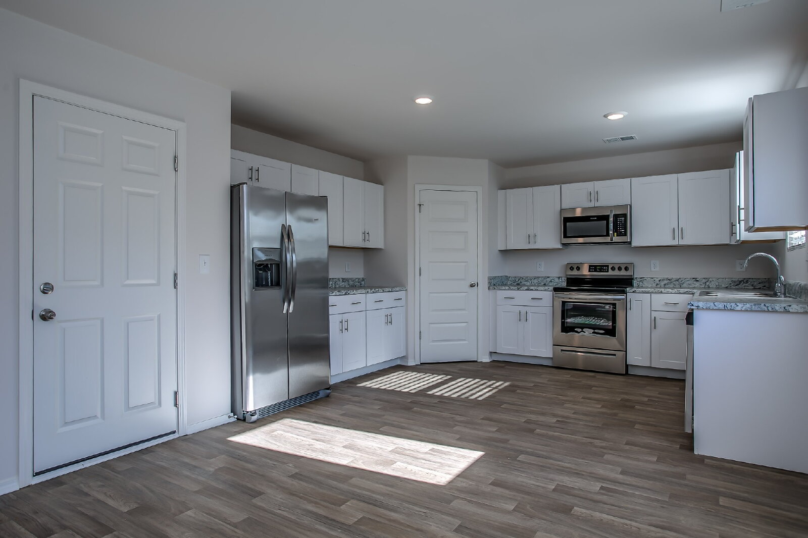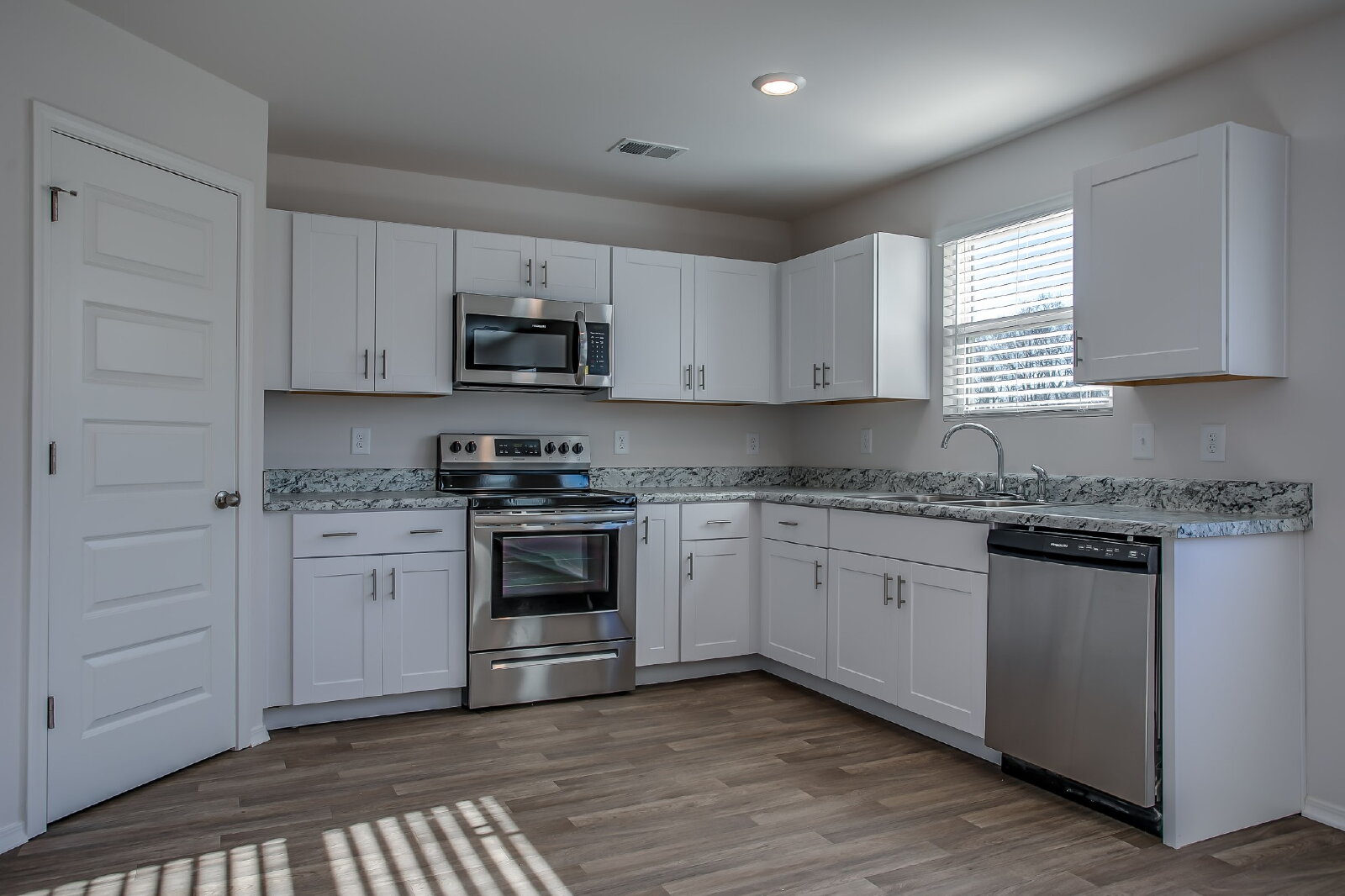 Built in 2019, this beautiful two-story home features an open kitchen with white cabinets and granite countertops. There’s also a dining room, a study, 3 full bedrooms, and 3 bathrooms! With the primary bedroom on the second floor, the property is scheduled to receive fresh interior paint in mid-May, followed by a carpet refreshment, and planning and development is underway to install new drains and fresh sod.